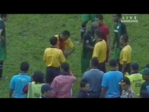 O primeiro post da temporada é do jogador indonésio Pieter Rumaropen do Persiwa Wamena (verde) durante a Super League. O jogo contra Pelita Bandung Ray (branco) ficou em 1x1, vejam o que aconteceu, após o pênalti marcado.